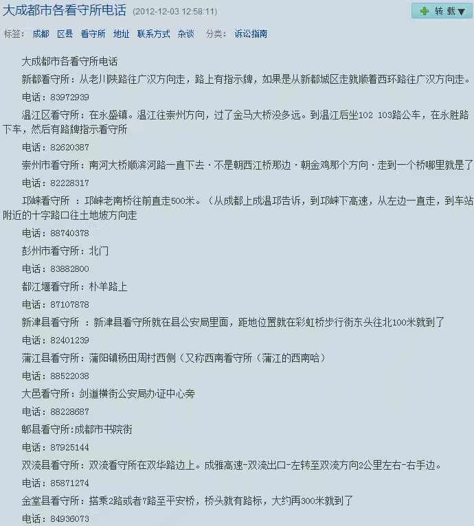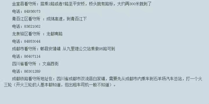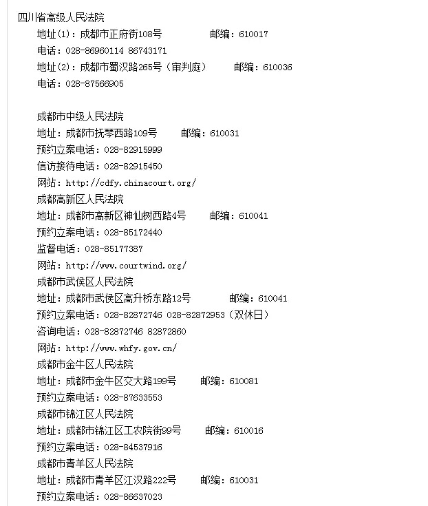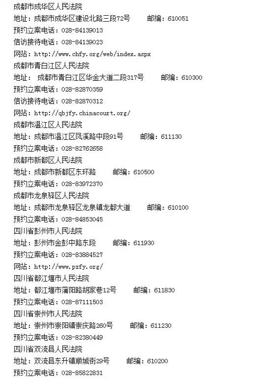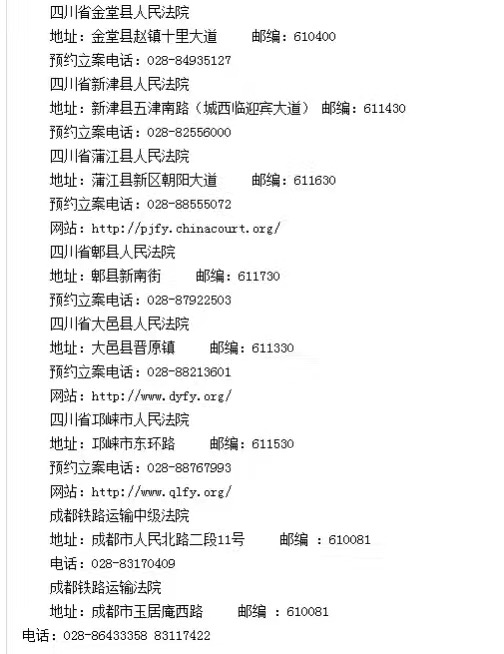 成都各区县法院看守所地址联系方式一览表