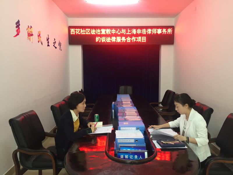 为配合国家做好“六五普法”宣传,更好地普及法律知识,提高民众法律意识,使更多百姓足不出户也可享受到高质量的法律服务,2017年10月13日,申浩成都办公室的罗子湄律师与双楠百花社区法治宣教中心负责人约谈法律服务合作项目,建立长期战略性法律合作关系。