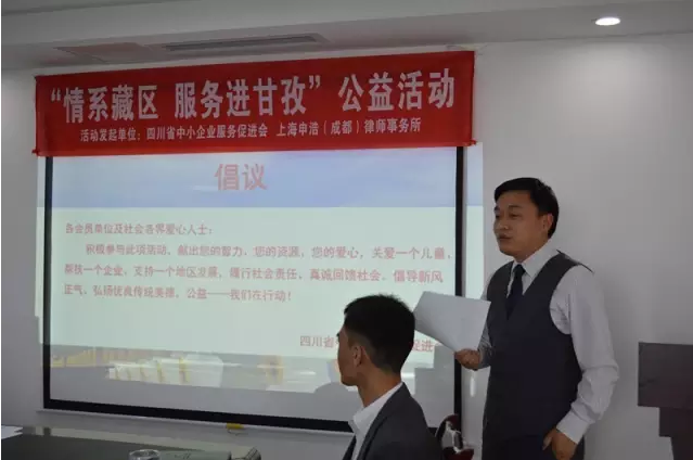 2016年4月25日由四川省中小企业服务促进会、上海申浩(成都)律师事务所发起的“情系藏区 服务进甘孜”公益活动在我所顺利召开。