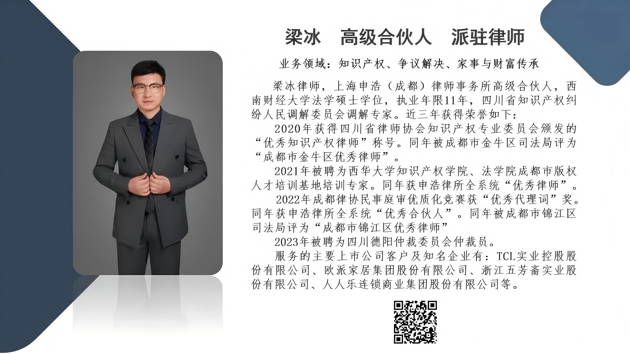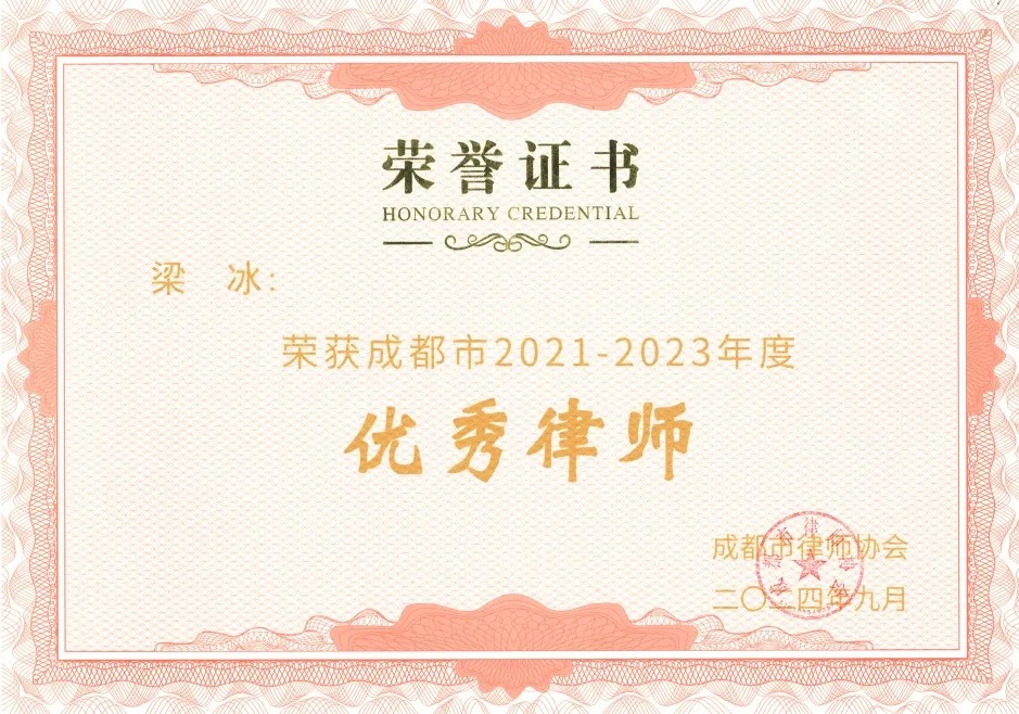 我所梁冰律师荣获成都市“2021-2023年度优秀律师” | 申浩动态 25-02-21